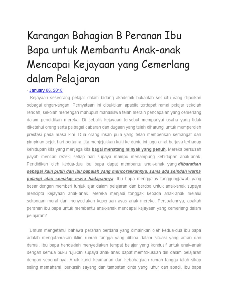 Karangan Bahagian B Peranan Ibu Bapa Untuk Membantu Anak Pdf