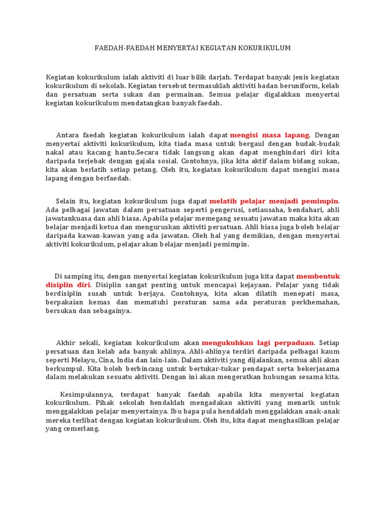 Karangan Faedah Menyertai Aktiviti Kokurikulum Spm Afiit