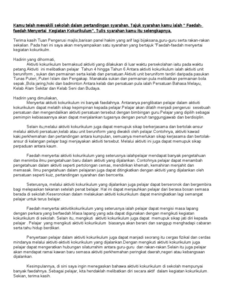 Contoh Karangan Faedah Menyertai Aktiviti Kokurikulum Calon LemahSederhana Penglibatan dalam aktiviti kokurikulum memberikan banyak faedah kepada murid. Interested in flipbooks about PERKHEMAHAN PERDANA UNIT BERUNIFORM SECARA MAYA. Benarlah seperti yang dinukilkan Saidina Ali Masa itu ibarat pedang jika kita tidak memotongnya maka pedang itu akan memotong kita.