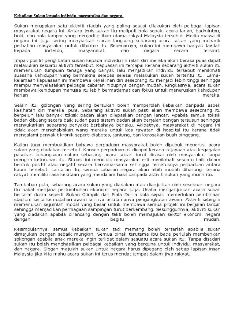 Dengan badan yang. Unduh sebagai DOC PDF TXT atau baca online dari Scribd. Tulis karangan tentang kebaikan bersukan dalam kalangan pelajar.
