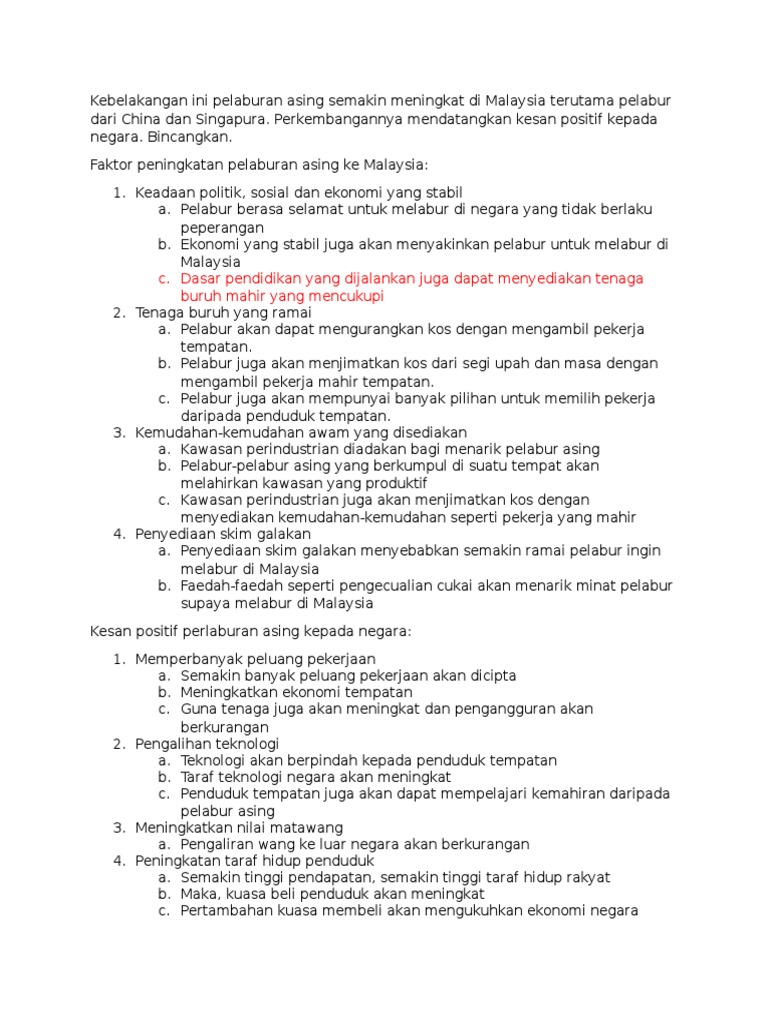 Kebelakangan Ini Pelaburan Asing Semakin Meningkat Di Malaysia Terutama Pelabur Dari China Dan Singapura Pdf