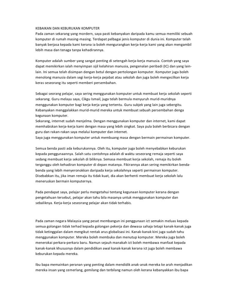Kebaikan dan keburukan internet karangan upsr. Setiap sesuatu benda atau perkara itu pasti ada kebaikan dan keburukannya. Doc Kebaikan Dan Keburukan Penggunaan Komputer Edited Jie Ha Academia Edu. Sama juga seperti internet ia juga mempunyai kebaikan dan juga keburukan jika menggunakannya terlalu kerap ia akan mengakibatkan ketagihan.