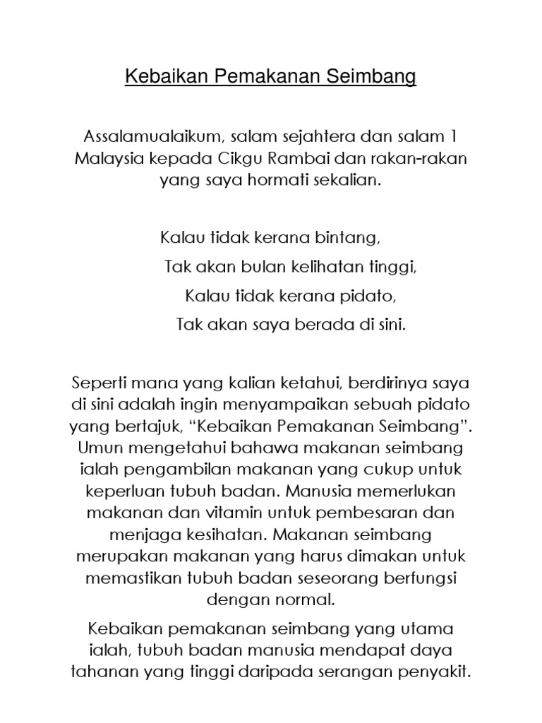Oleh itu sekiranya kita ingin sihat kita seharusnya mengamalkan makan secara sihat dan seimbang. Makanan seimbang dan porsi makanan yang sesuai. Kepentingan Amalan Pemakanan Seimbang kepada Remaja Pendahuluan.