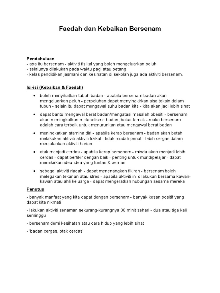 Untuk perkembangan dan pertumbuhan diri dengan baik 2. Panjangnya huraian hendaklah antara 200 hingga 250 patah perkataan. Malah aktiviti fizikal juga dapat mengurangkan risiko kecederaan lebih-lebih lagi apabila kita sudah menginjak ke usia tua.
