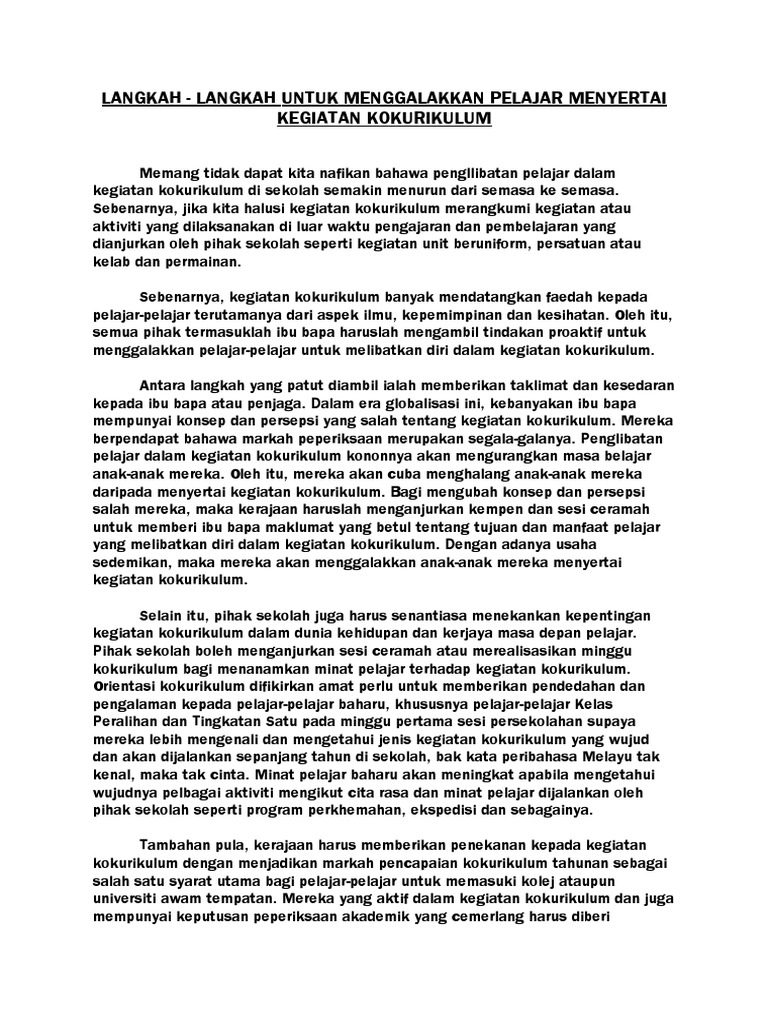 Karangan Langkah Menggalakkan Aktiviti Kokurikulum Pdf
