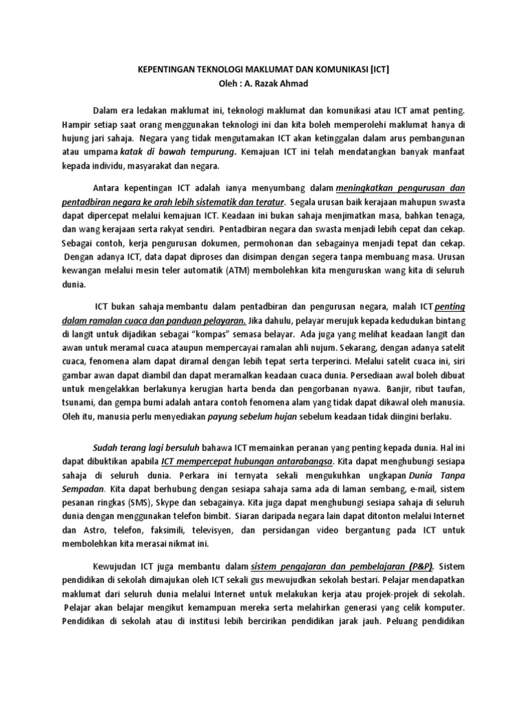 Kepentingan Teknologi Maklumat Dan Komunikasi Pdf